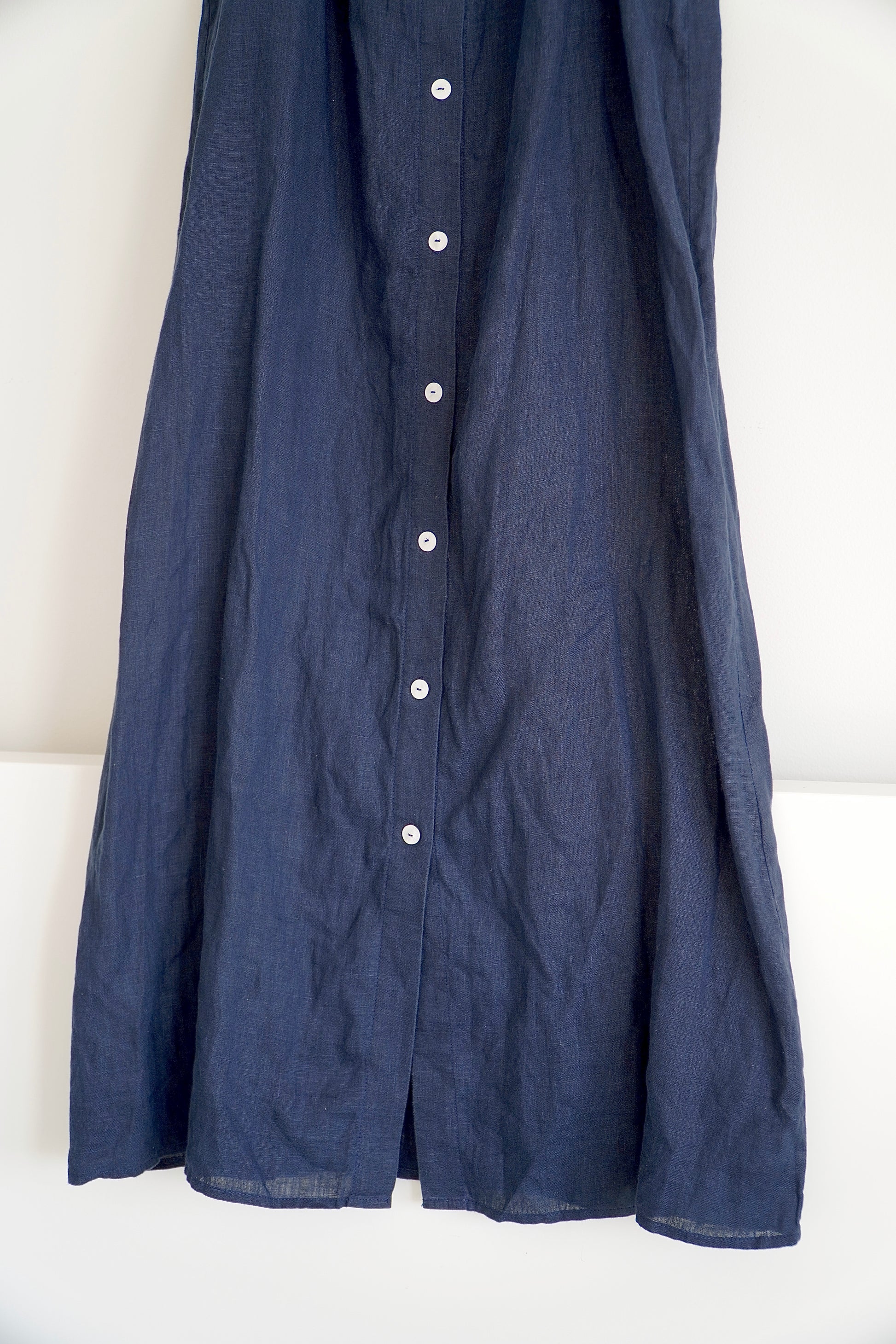 Sleeper Navy Blue ‘Brigitte’ 100% Linen Button Up Midi Dress